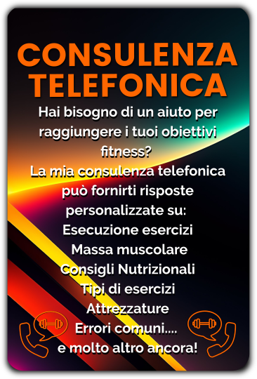 Oltre la consulenza, avrai anche accesso al mio servizio di supporto TELEFONICO e WHATSAPP per 1 mese. Grazie a questo servizio, avrai a tua disposizione la mia esperienza, sempre pronta ad aiutarti ad affrontare ogni difficoltà che potresti incontrare durante tutto il percorso. Inizia a costruire la tua forma fisica oggi stesso!